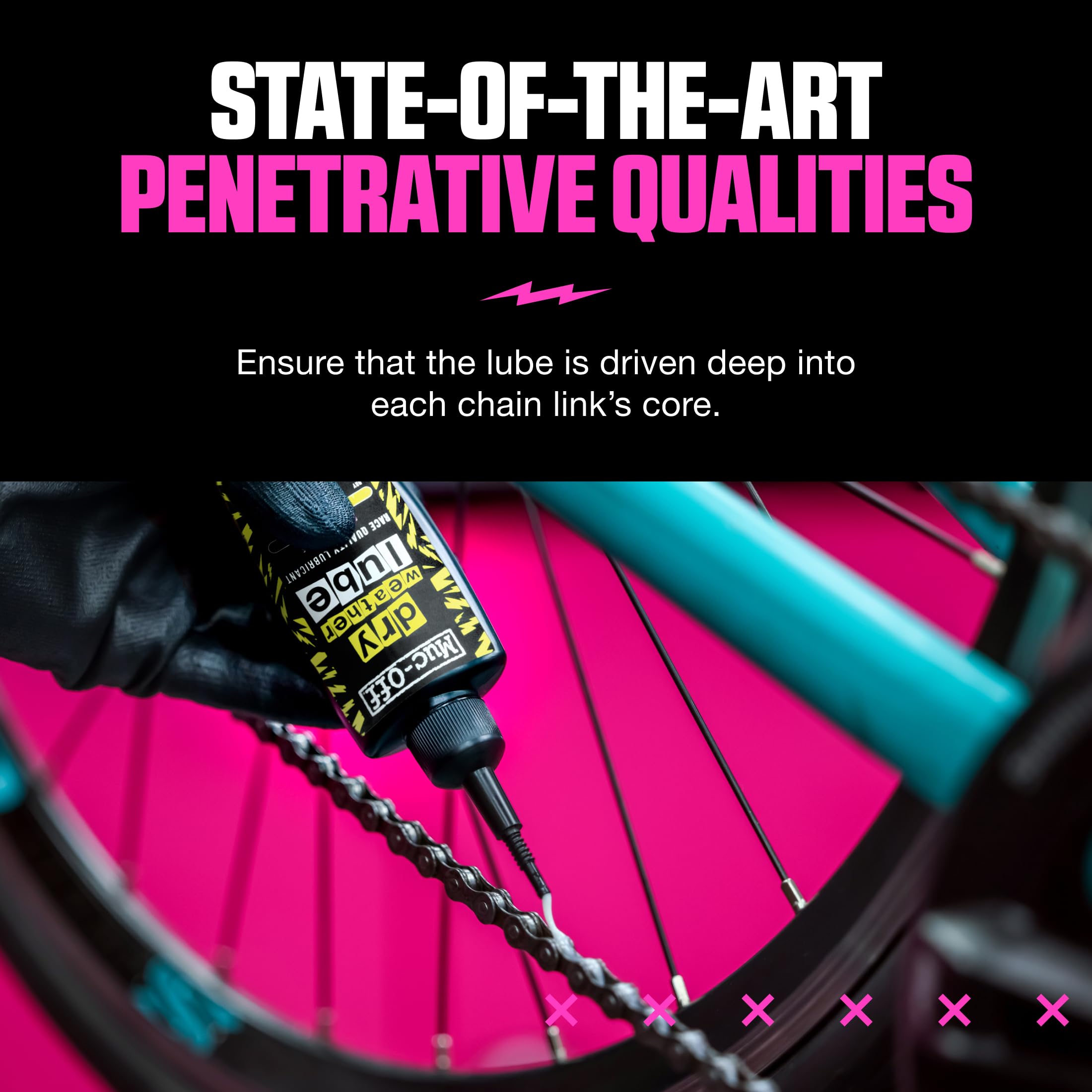- ULTRA-DURABLE: Muc-Off Bio Dry Lube is an ultra-durable bike chain lube that penetrates deep to provide long-lasting lubrication.