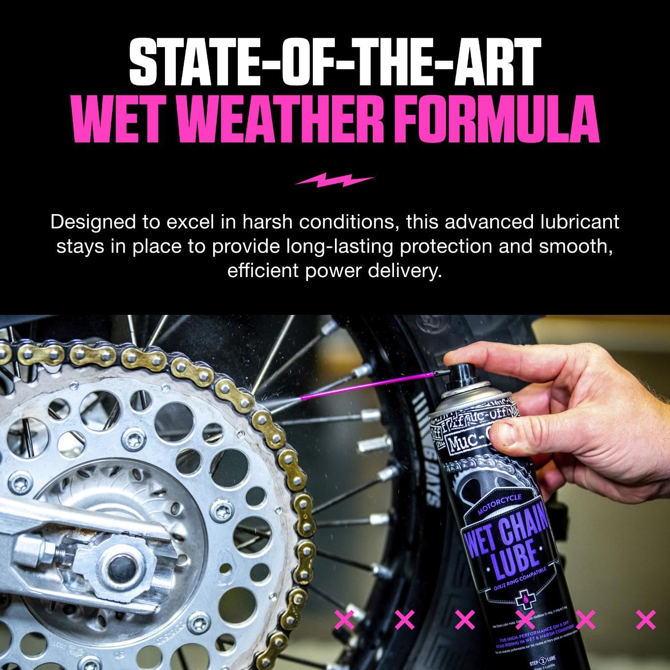 - PREMIUM LUBRICATION: Muc-Off Motorcycle Wet Chain Lube is a premium synthetic formulation that ensures first-class performance.